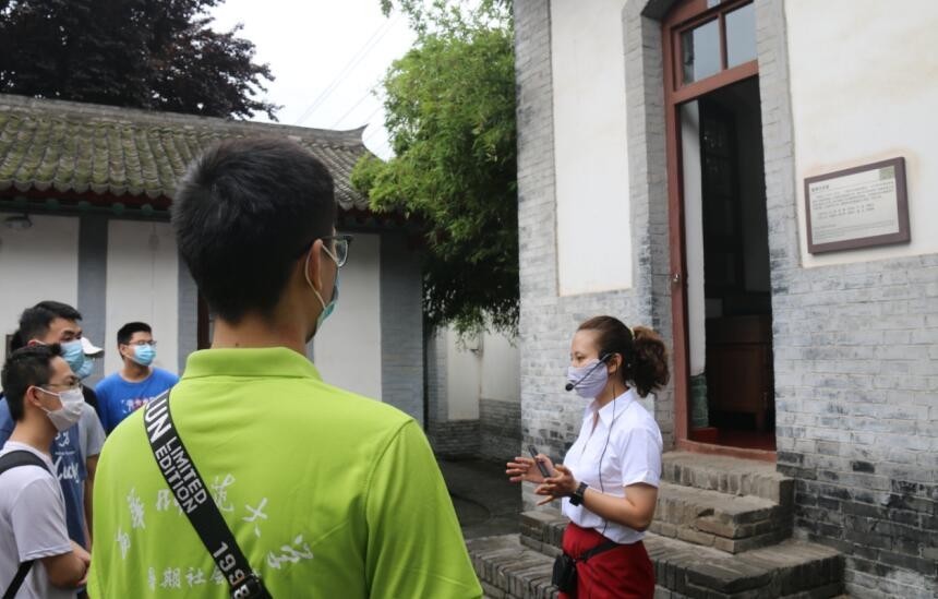 图为八路军西安办事处纪念馆实践队员聆听导游讲解
