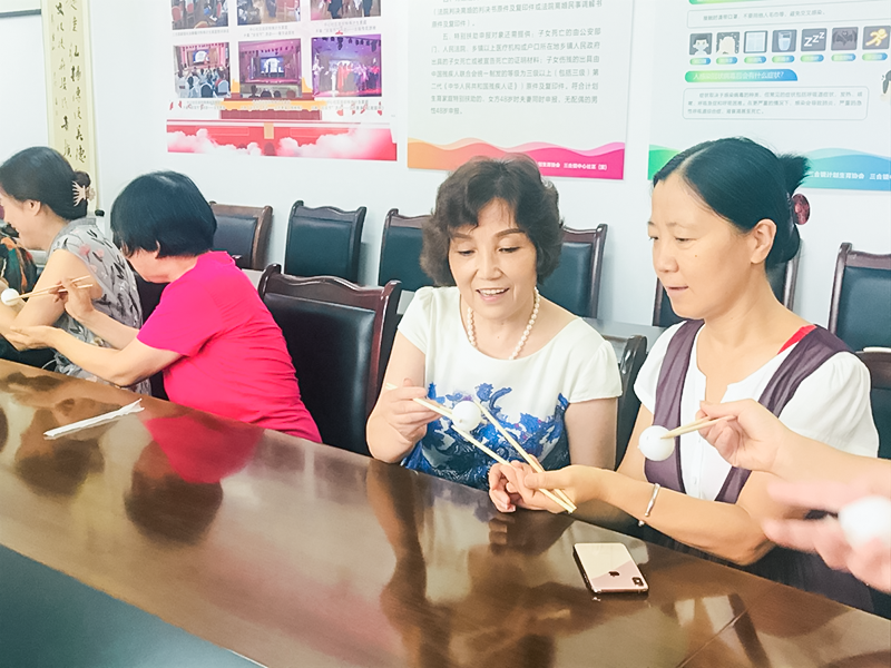 此次活动吸引了同心社区的16位居民参加。在有趣的破冰游戏“趣味乒乓球”环节,社工先给大家介绍了游戏规则,大家了解了游戏规则后都跃跃欲试。快看,一组的第一位参与者以“光一样的速度”把球夹给了第二位选手。二组也不甘示弱,也快速地把球传给了第二位“选手”,就在传给第三个人的时候,球就像只兔子一样从筷子上跳了下来,引得大家哈哈大笑……