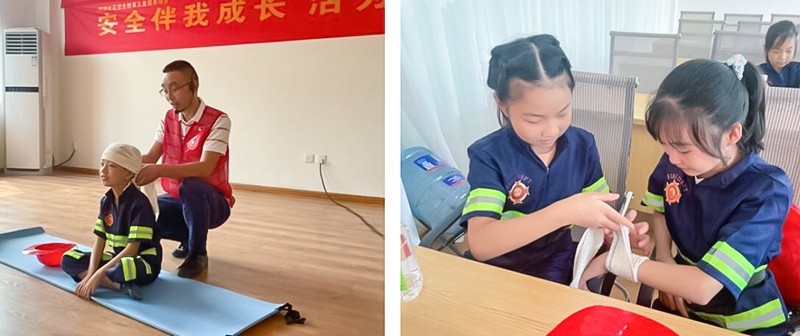 8月19日上午,20名梓潼少年前往崇州市社区安全屋,安全屋培训导师通过11种场景沉浸式教学为梓潼少年准备了“应急救护”视频+实践教学、“VR”安全情景体验和“消防逃生馆” 三大体验板块来巩固应急安全科普知识。