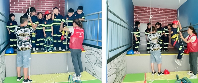 体验完模拟灭火后,孩子们来到百变绳结区,通过视频讲解,学习不同情境下多种绳结的使用方法,有单八字结、双八字结、平结、反八字结等。在锻炼逻辑思维能力和动手能力的同时,掌握基本的生活生存技能。