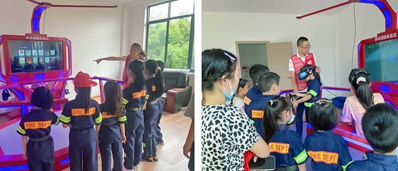 一进VR体验区,孩子们就被黑科技VR虚拟的学校火灾、地震、泥石流等体验吸引了,都想体验VR中的各种场景,通过安全屋培训导师的讲解,孩子们对VR有了一定的认识,知道VR体验是通过视觉、听觉、触觉等感官的虚拟,让使用者仿佛身临其境一般。
