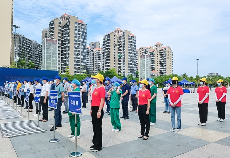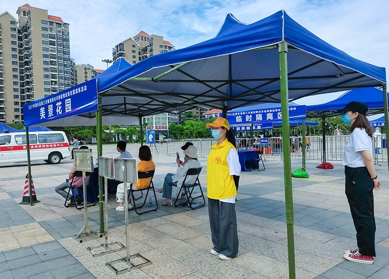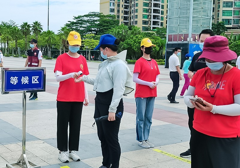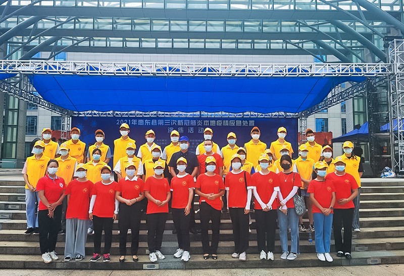 8月19日,广东省惠东县疫情防控指挥部在县城新文化广场开展第三次新冠肺炎本地疫情应急演练活动。惠东县爱心群志愿者协会组织30余名志愿者参加演练。