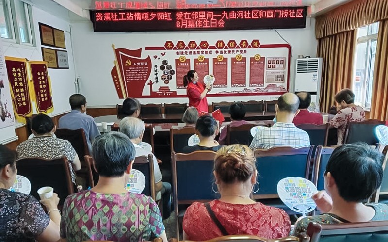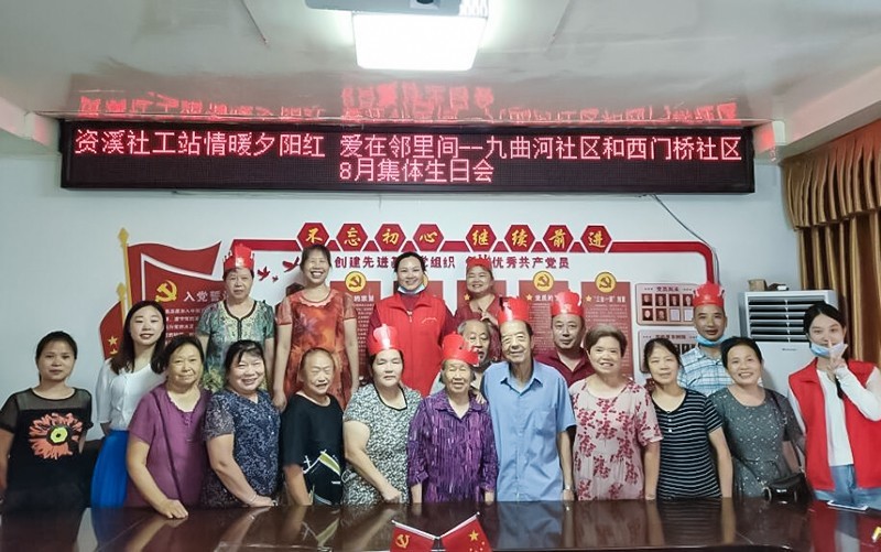 为宣传全国文明城市建设内容,满足老年人的精神慰藉需求和搭建沟通交流的平台,8月20日,由四川省民政厅、资阳市民政局、雁江区民政局、资溪街道办事处主办,资阳市心公益社会工作服务中心联合九曲河社区和西门桥社区共同开展了“情暖夕阳红 爱在邻里间”暨西门桥社区和九曲河社区8月集体生日会主题活动。九曲河社区副主任姚丽丁参加活动,与西门桥社区共同为老人们送上了生日的祝福。