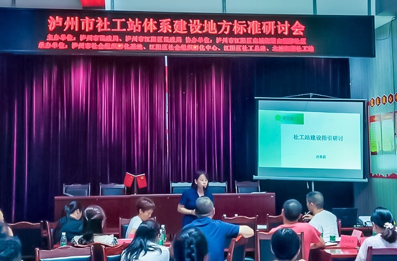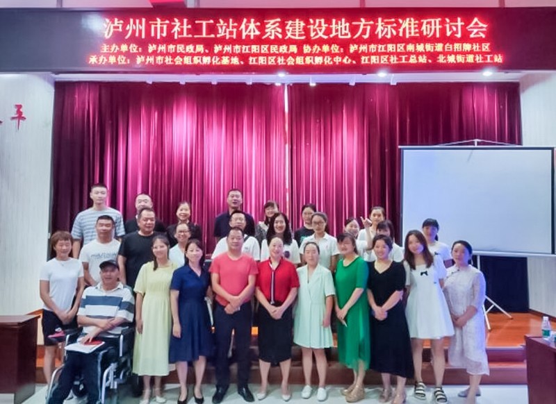 8月25日下午,由四川省泸州市民政局、泸州市江阳区民政局主办,泸州市社会组织孵化基地、泸州市江阳区社会组织孵化中心、泸州市江阳区社会工作服务总站、泸州市江阳区北城街道社会工作服务站承办、泸州市江阳区南城街道白招牌社区协办的泸州市社工站体系建设地方标准研讨会如期开展。泸州市江阳区民政局、泸州市江阳区北城街道社事办、茜草街道社事办、黄舣镇社事办及泸州市的社会组织、成都市的社会组织等参加了此次研讨会。