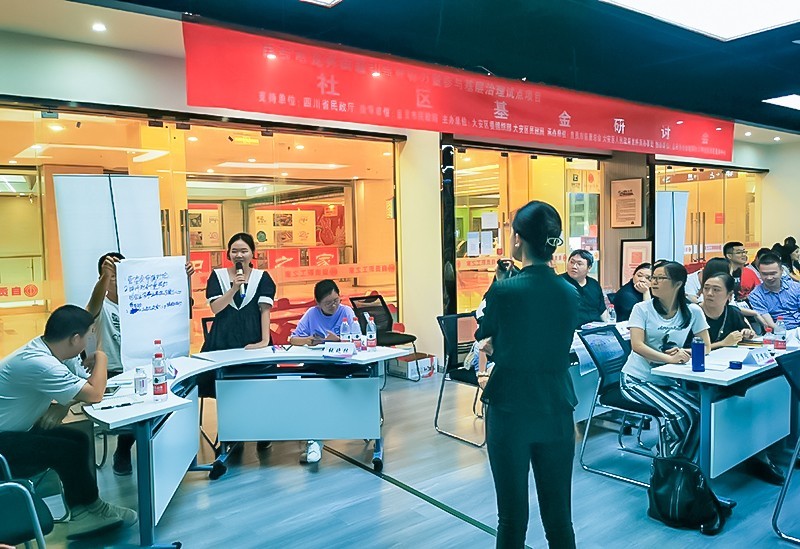 本次社区基金研讨会为期两天,自贡市民政局副局长黄艳峰出席,自贡市大安区、沿滩区、自流井区、富顺县等各区县相关乡镇、民政局代表约70余人参加。