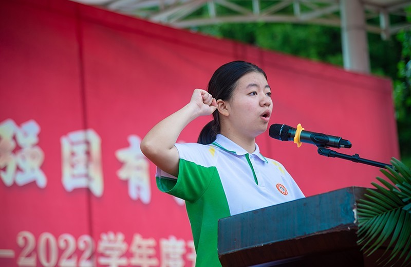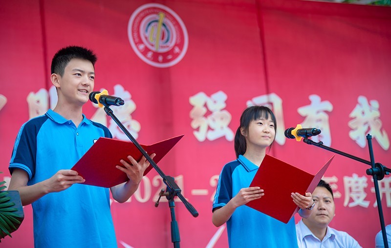 “钟灵毓秀的嘉陵江畔,一座美丽的校园正向我们张开臂膀。我怀揣着青春的梦想,在秋天,远离家人,来到南充十一中,来到这里,倾注青葱灿烂的年华,欲丰满羽翼……让我们以信念为墨,以实践为砚,以奋斗为笔,在美丽的南充十一中书写青春的故事。”仪式上,高一新生何洋、李可以诗歌朗诵的形式畅想在十一中的青春。