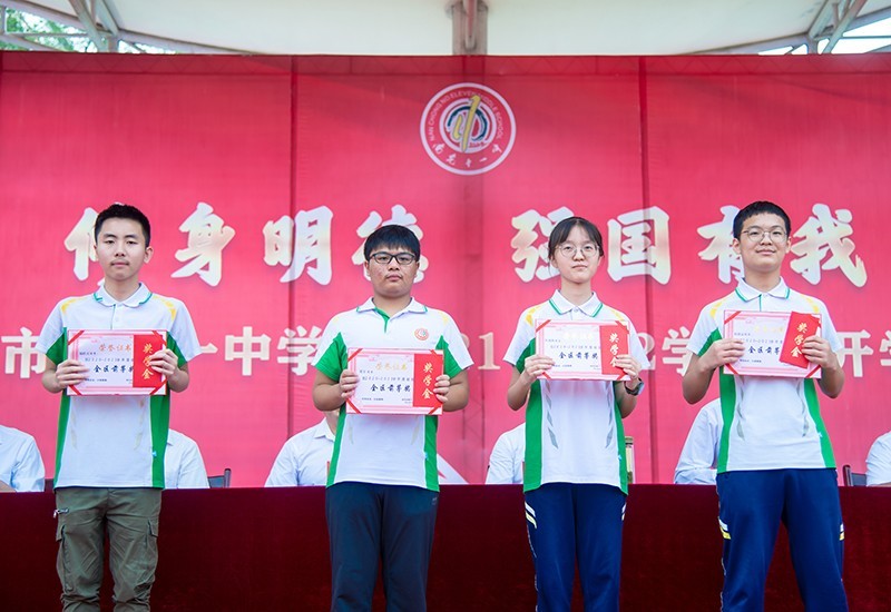 崇文尚德,玉琢三年成大器;扬鞭跃马,鹏飞万里展宏图。今天你们以十一中为荣,明天十一中将以你们为傲。在高二16班同学王艺霖的带领下,全校同学共同宣誓:见贤思齐德为先,择善而从正气存;尊师守纪严约束,光明磊落立乾坤……
