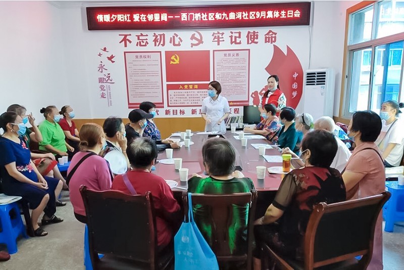 为进一步丰富老年人的精神生活,增加老年人的幸福感,增进社区居民团体的凝聚力。9月10日,由四川省民政厅、资阳市民政局、雁江区民政局、资溪街道办事处主办,资阳市心公益社会工作服务中心联合西门桥社区和九曲河社区共同开展了“情暖夕阳红 爱在邻里间”暨西门桥社区和九曲河社区9月集体生日会主题活动。