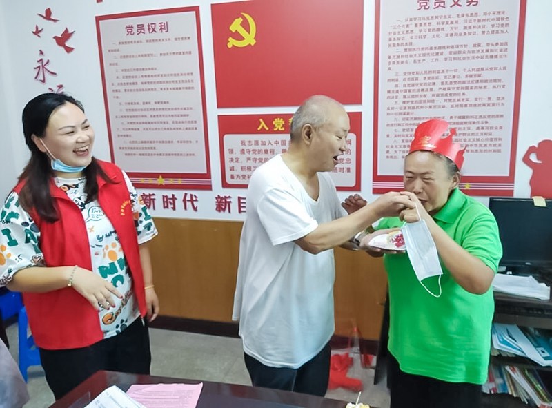 相关宣传讲解结束后,社工拿出生日蛋糕,和志愿者一起为老人们戴上生日帽,点燃生日蜡烛、齐唱生日歌、许下生日愿望,给老人们送上了美好的生日祝福。最后心公益社工还邀请了参加生日会的夫妻上台,彼此说出心里话与祝福。有一对六十年的夫妻表示“感谢丈夫多年的陪伴,今天和他一起过生日,心里特别甜,非常幸福”,现场氛围温馨而美好。