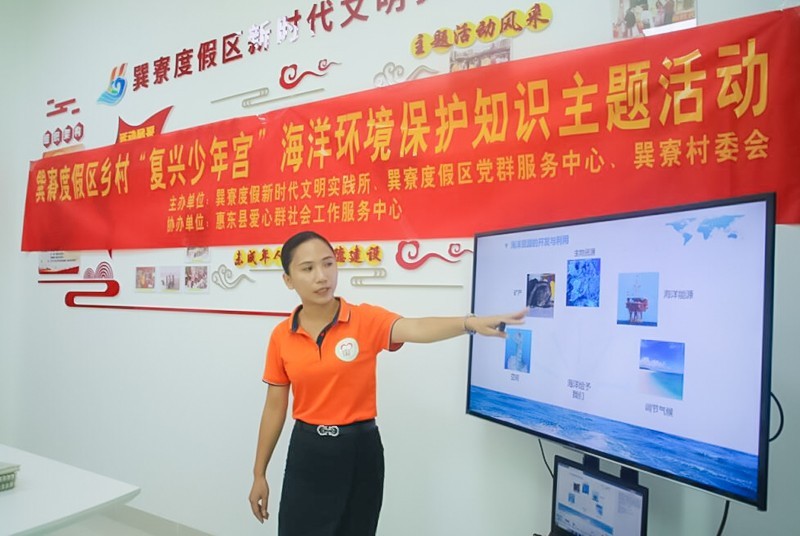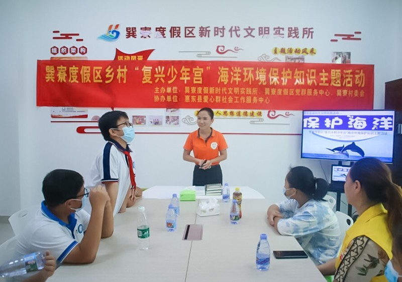 巽寮度假区充分发挥新时代文明实践所的志愿服务宣传阵地作用,积极与公益组织合作,大力推进巽寮度假区乡村“复兴少年宫”建设。9月11日,由巽寮度假新时代文明实践所、巽寮度假区党群服务中心、巽寮村委会主办,惠东县爱心群社会工作服务中心协办,寮度假区乡村“复兴少年宫”海洋环境保护知识主题活动热烈开讲。