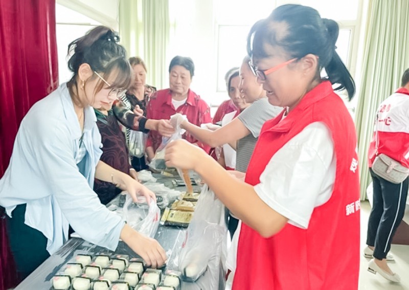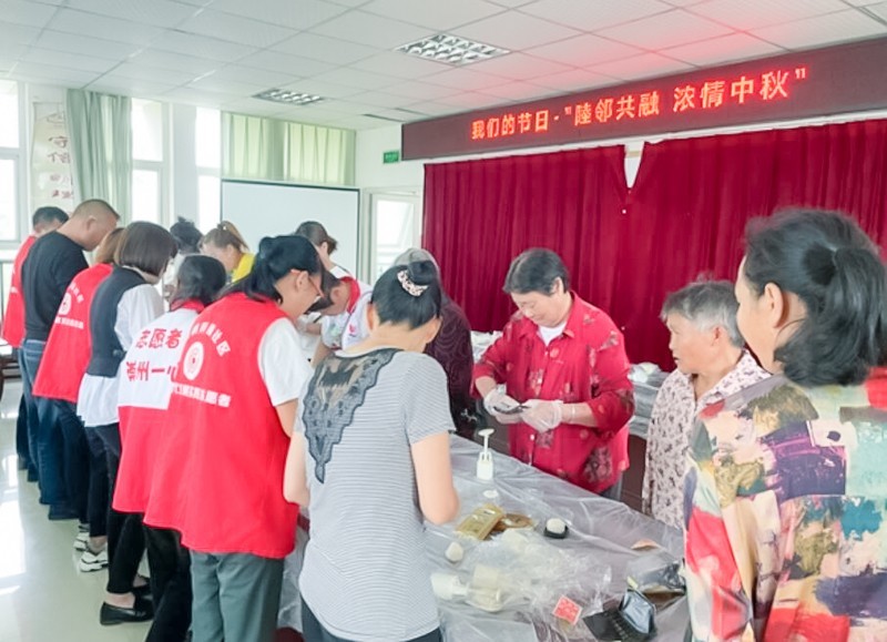9月16日下午1时,梓潼社区会议室里一片欢声笑语,一群“红马甲”兴高采烈,熟门熟路熟技术,精心制作百余枚“爱心牌”手工月饼,入户送到梓潼社区空巢、独居、孤寡、失独、重症、病残老人家里。