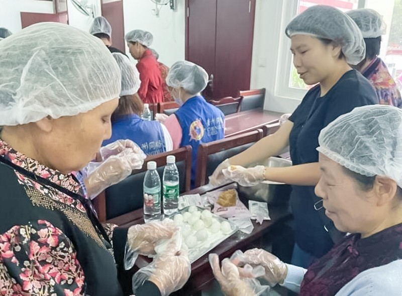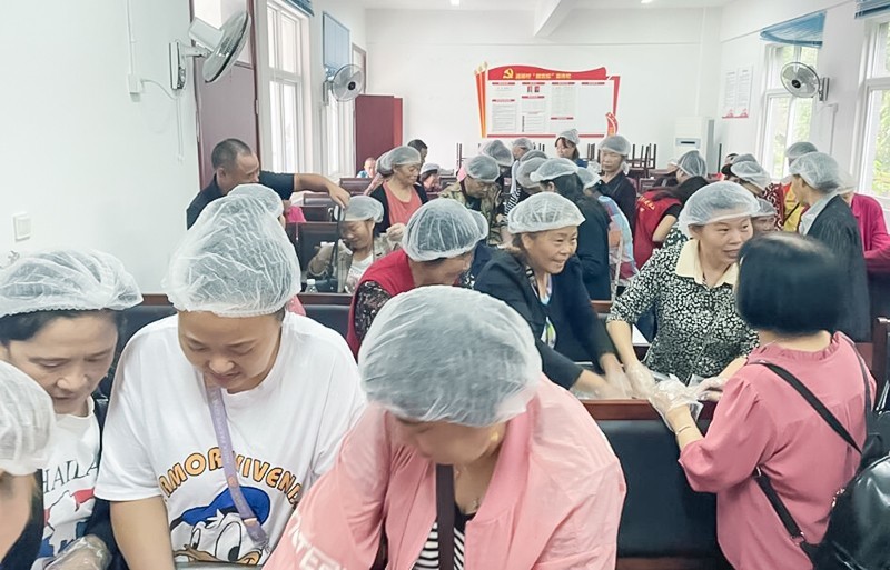 活动现场围满了前来参加活动的村民,首先由社工给村民们分发制作材料与工具,按照社工的指导,大家开始分工制作,和面、压皮、包馅、按压,最后放进各种花纹的模具之中定型,每个步骤有条不紊,村民们做得都非常认真,大家都做得有模有样的,当看到一个个漂亮的月饼从自己手中诞生时,大家都异常兴奋和满足,大家在制作过程中有说有笑,现场的气氛十分活跃,欢声笑语乐不停。