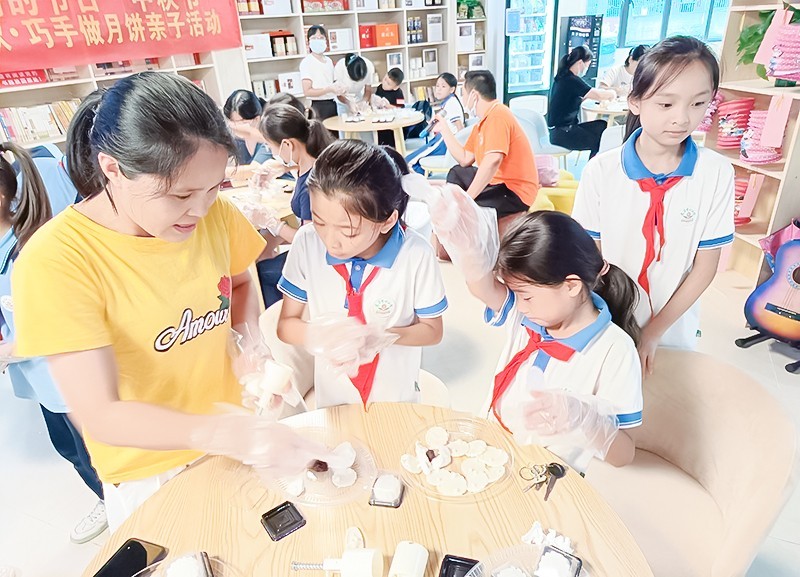 “看!我做的冰皮月饼多漂亮!”孩子们和家长一起品尝了亲手制作的月饼,并把蕴含着满满心意的月饼装进礼品盒,准备带回去分享给亲朋好友。