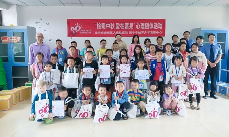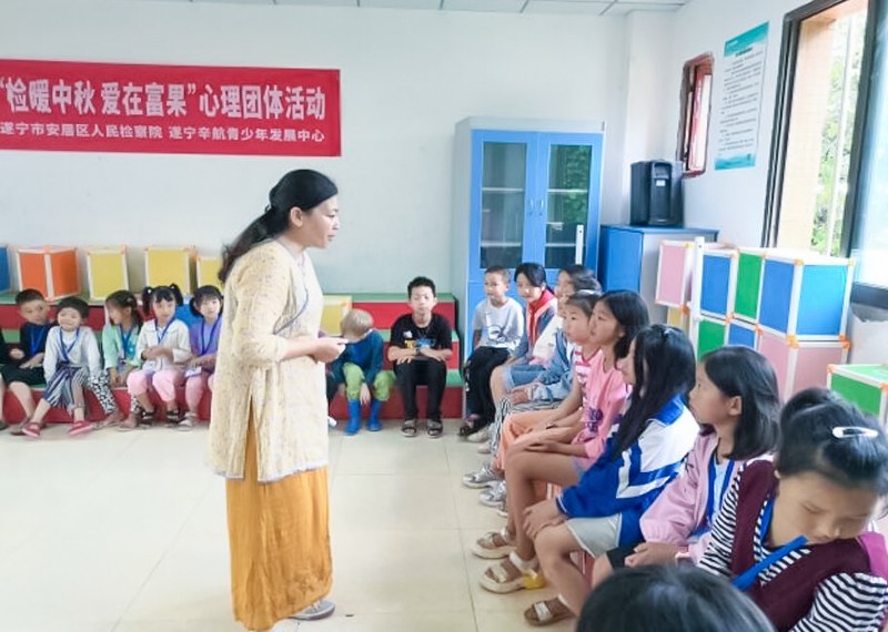 近年来,留守儿童的问题得到了社会各界的广泛关注,由于缺乏监管能力和有效的监管手段,导致留守儿童容易出现缺乏安全感、学习动机不足、安全问题频发等问题。为培养遂宁市安居区西眉镇九年义务教育学校68名留守儿童良好的心理品质,树立自信,形成正确的人生观、世界观。9月16日上午,在四川省遂宁市安居人民检察院的指导下,遂宁辛航青少年发展中心走进遂宁市安居区西眉镇九年义务教育学校开展“检暖中秋,爱在富果”活动。