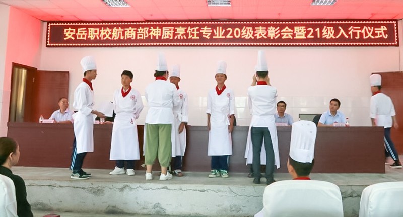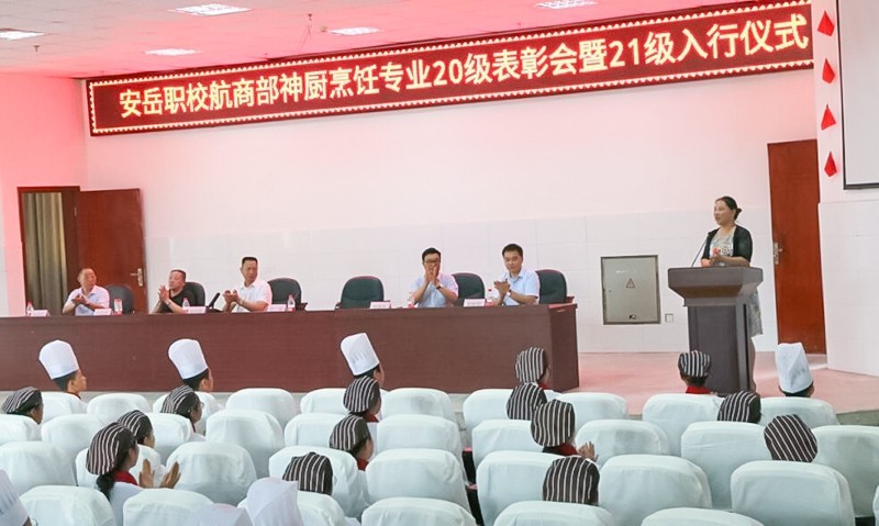 9月24日下午,四川安岳天高云淡,安岳职教中心校园内金桂飘飞香风送远。“神厨教育烹饪专业20级表彰会暨21级新生入行仪式”在学术厅隆重举行。安岳职教中心(安岳第一职业技术学校)航商部主任刘黎,四川神厨教育总经理施维乐,中国食文化传承人、四川烹饪协会副秘书长、神厨教育实习就业督导徐小明,中国烹饪大师、神厨教育实习就业督导刘汉忠,四川省川菜对外交流促进会专家、神厨教育实习就业督导杜成斌,百年神厨董事长助理、神厨教育学工部部长邓世轩,以及安岳职教中心神厨教育烹饪专业一百多名师生参加了本次活动。