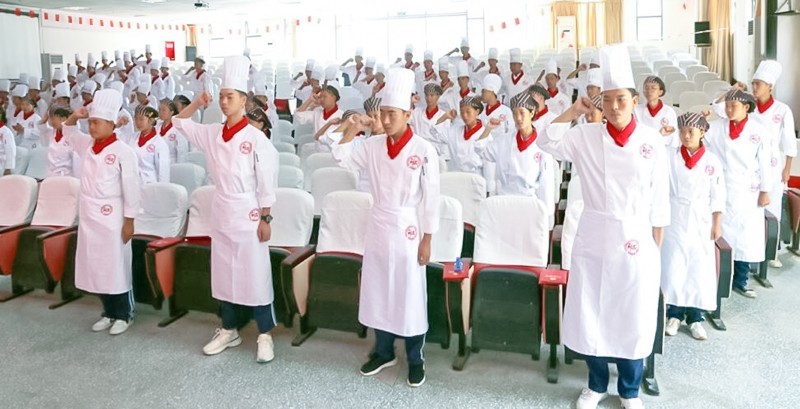 为了让烹饪专业学生入学就有入职、入行的体会,树立良好的理想和信念,将来成为有用之才和行业精英,活动举行了一个别具特色入门宣誓仪式。在蒋佶赟同学的带领下,一百多名烹饪专业的同学庄严地举起右手宣誓: