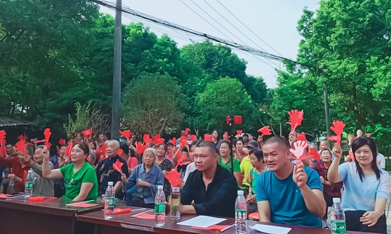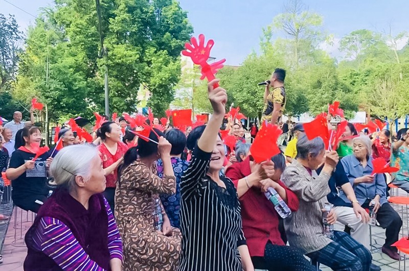 演出活动以《天美地美中国美》舞蹈拉开了序幕,在活动中,表演形式多样,社区居民们载歌载舞,除了有歌颂祖国美好的《大中国》、《五星红旗》还有《映山红》、《张灯结彩》、《我们共同的家》、《变脸+吐火》、《滚灯》等节目,多个节目组成了美轮美奂的视听盛宴。台下居民欢呼不断,用手机不停地拍拍拍,生怕错过了一个镜头。大家沉浸其中,情不自禁跟着舞台一起吟唱,有节奏地挥舞手中的小红旗和手拍,表达属于自己的喜悦和满足。