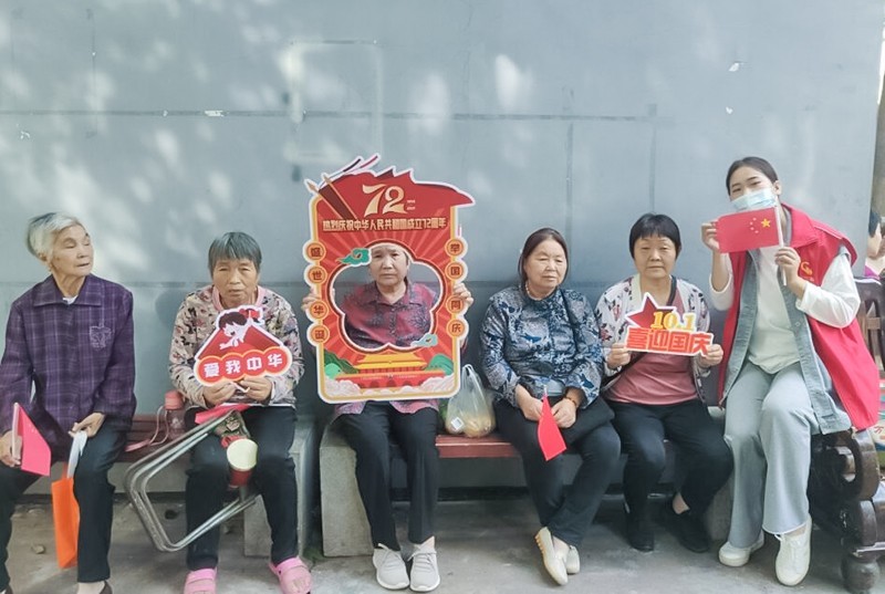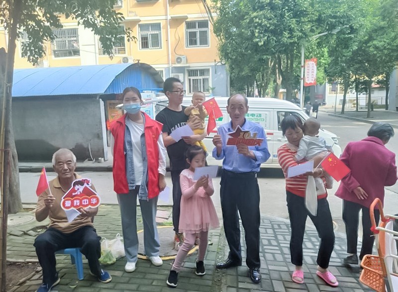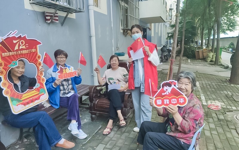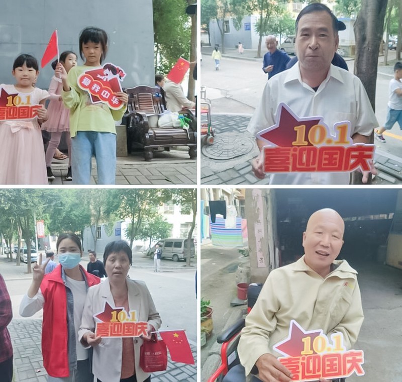 在新中国成立72周年之际,为欢度国庆,在河南省洛阳市洛龙区民政局的指导下,阳光社工翠云路社工站在龙祥东社区开展了以“齐献祝福 欢度国庆”为主题的快闪活动,以此来庆祝祖国的诞辰,营造热烈喜庆的节日氛围。