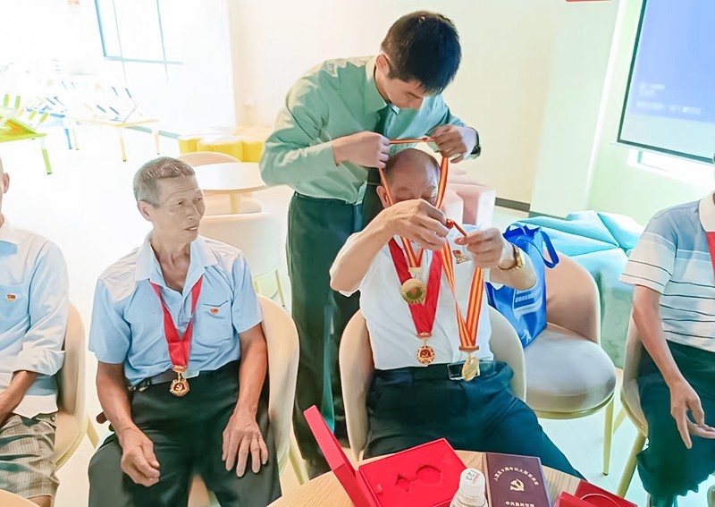 随后的交流环节,高潭镇退役军人服务站工作人员对在座的党员老兵献上了真挚的祝福,并向每一位党员老兵献上了政治生日花,为其对国家建设、对社区工作的辛勤付出表示深切的感谢。在场的各位党员积极踊跃地分享了入党故事和军旅生活,畅谈建党百年以来的感受和体会,活动现场气氛热烈。一百年征程浩荡,五十年红心依旧。“中国这几十年的变化是巨大的,是有目共睹的,这离不开共产党的正确领导和广大劳动人民的艰辛付出,作为党员老兵我深有感触。”党龄55年的张忠老同志如是说道。