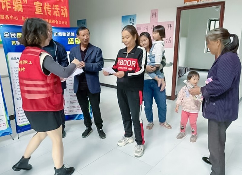 活动中,社工志愿者通过向社区居民发放《防诈骗宣传单》和讲述电信诈骗的种类、惯用手段及防范常识,以及“电信诈骗识骗防骗技巧”、“电信诈骗常用语”、“电信诈骗常用行为”,提醒社区居民不要轻易将个人资料、卡号、存款、密码等信息告知他人,如遇可疑情况,要多和家人沟通商议或及时报警。