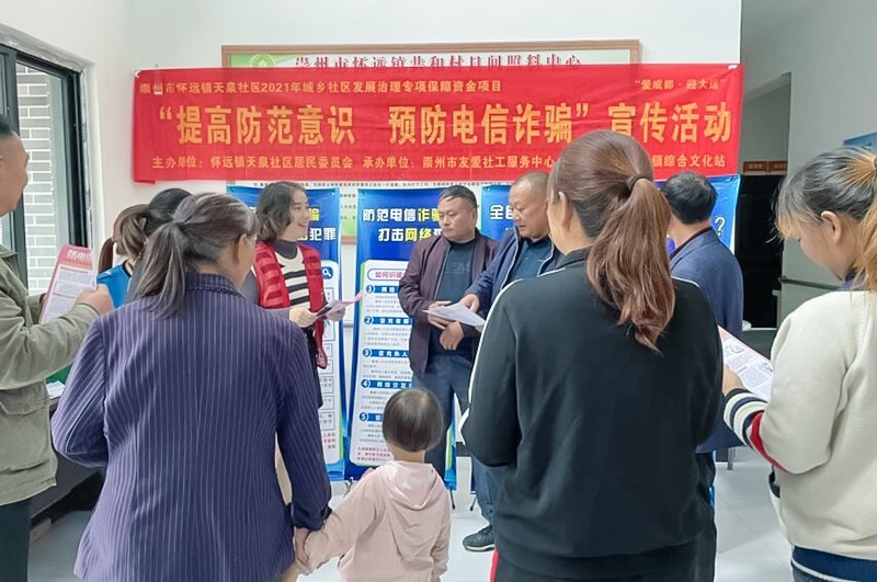 为预防和减少电信诈骗案件的发生,提高群众防范意识、网络诈骗意识。10月11日下午,由四川省崇州市怀远镇天泉社区居委会主办、崇州市友爱社工服务中心承办的“提高防范意识·预防电信诈骗”宣传活动在天泉社区共和日间照料中心顺利开展,此次活动吸引天泉社区居民30余人参加。