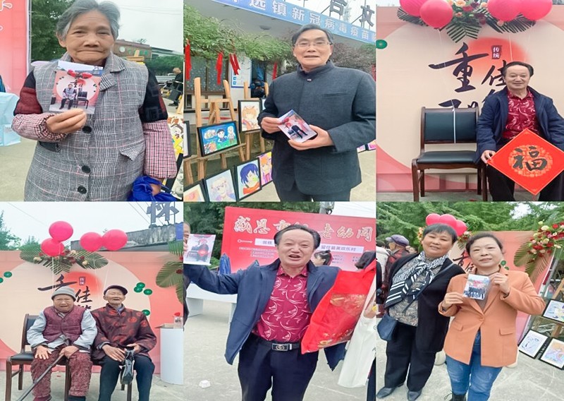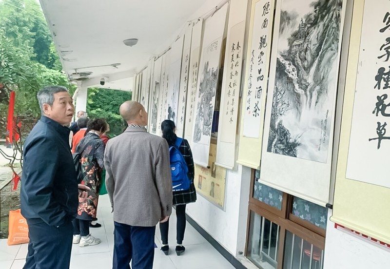 看完文艺汇演的老人有的喝茶、吃糕,有的观看画展、领取写有“福”字、“寿”字的字画,有的在我们的留影区打卡拍照。活动现场的节目一环扣一环,老人在活动现场都玩得兴高采烈。