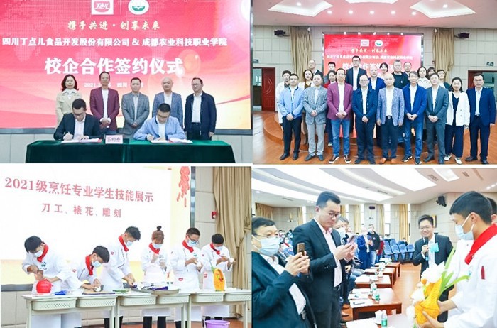 为深化产教融合、校企合作,推动人才培养模式变革,10月15日下午,成都农业科技职业学院与四川丁点儿食品校企合作启动仪式暨首届餐饮人才培养论坛在该校科技报告厅举行。来自成都多个餐饮企业行业的精英、专家导师出席本次会议,该校党委书记邵波,产教融合处、教务处、休闲旅游学院负责同志出席会议。