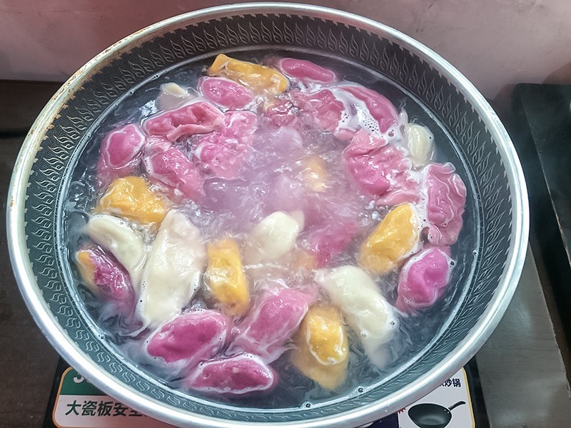 彩色的水饺让人食欲大振,接连煮了三锅水饺后,大家开始品尝热气腾腾、香气扑鼻的饺子,都说味道十分不错,吃得津津有味。