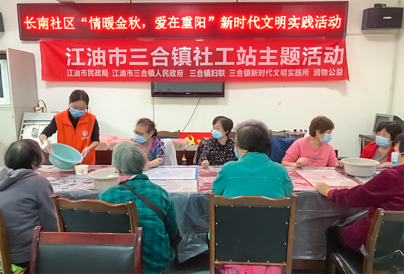 九九重阳节,浓浓敬老情。为弘扬中华民族尊老敬老爱老的传统美德,营造关爱老人的温馨社区氛围。10月14日上午,四川省江油市三合镇社工站携手长南社区举办了“情暖金秋,爱在重阳”包饺子活动,社工和社区工作人员陪同老人们度过了一个温馨愉快的重阳节。