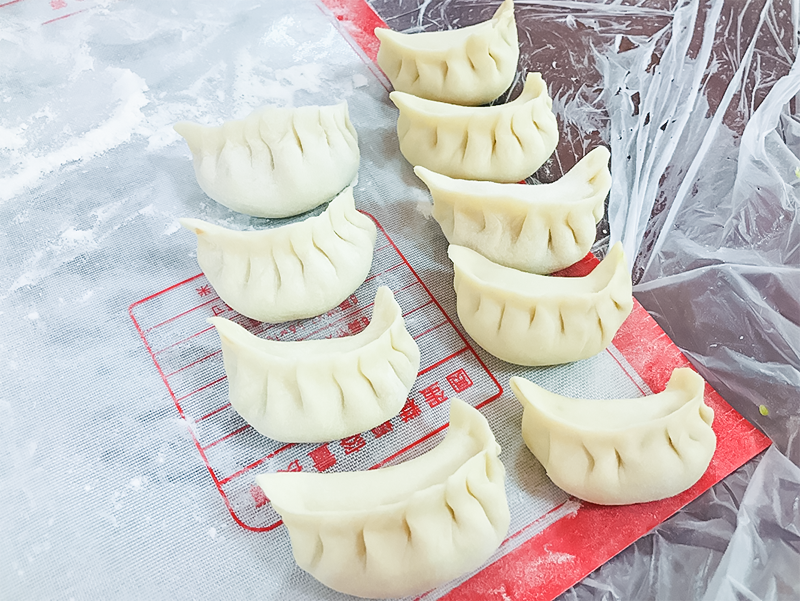 按照每个人的擅长,社工将参与者分成4个小组。和面、切面、擀皮、调馅、包饺子,每一个组组内分工明确,各司其职,搭配得非常好。