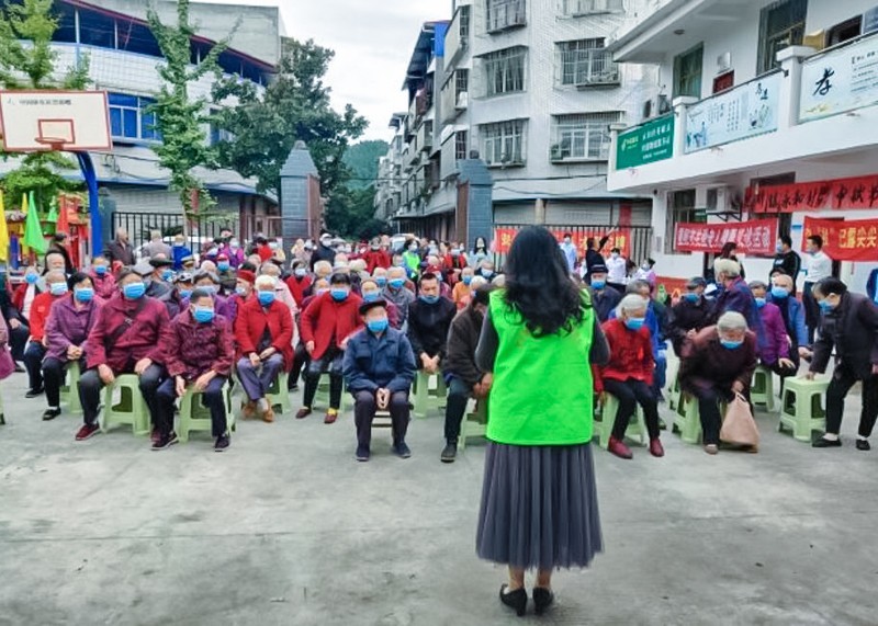 活动开始,沱牌镇领导首先致辞,表达重阳节对老年人的美好祝福。接着邀请法院赵法官给老人们宣讲网络安全防诈骗知识,沱牌中心卫生院主任给大家讲解了老年人常见疾病及预防措施,给大家宣传了健康和法律、防骗知识和技能,春晖社会工作发展中心社工龙琼为大家讲解了沱牌镇社工站为老人提供的服务,最后简单概括“永和村社工室就是为大家服务的”大家一致喝彩。