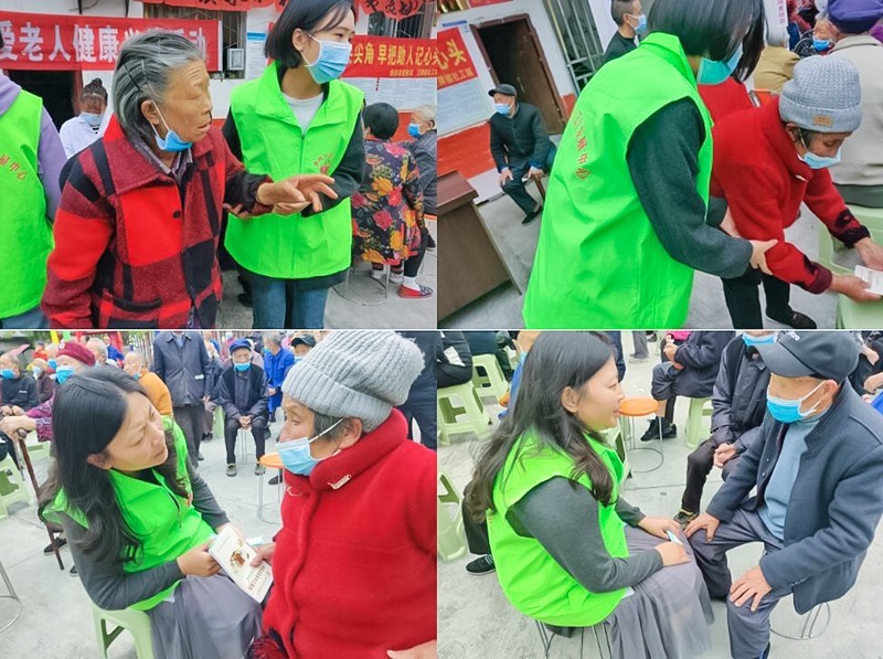 活动现场,“健康义诊”,医生为居民提供量血压、病史询问及用药指导,健康评价等。同时发送一些“高血压”、“糖尿病”和“健康饮食”、“口腔健康”等宣传资料并给予指导。遂宁春晖社会工作发展中心的社工也在现场帮助维持秩序,搀扶老人,并在一旁舒缓担心患病的老人的情绪,安排老人优先检查,给了他们极大的心理抚慰。