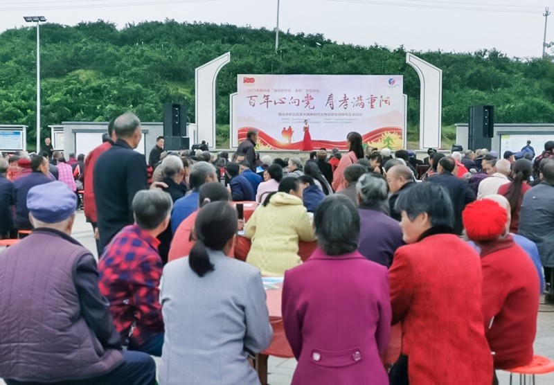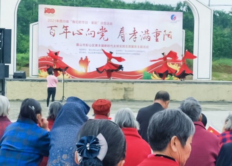 10月14日,由四川省眉山市彭山区精神文明办指导,彭山区黄丰镇新时代文明实践所主办以“百年心向党 寿孝满重阳”为主题的九九重阳节活动在黄丰镇团结村橘花广场举行,现场共有500余位老人参与了今天的活动。