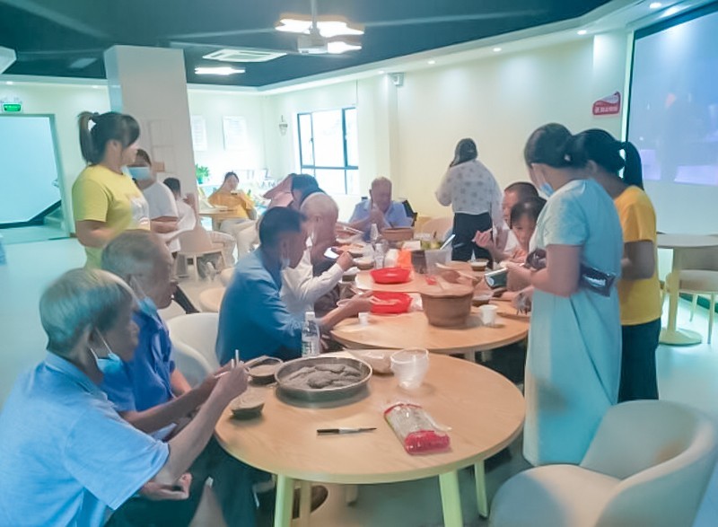 本次活动盛情邀请了高潭镇10位老战士齐聚一堂,共同庆祝重阳佳节。茶话会上,老战士们品尝了现场制作的擂茶,他们在擂茶飘香中追忆当年激情燃烧的烽火岁月,老战士钟百旺主动分享了自己的战斗经历和革命故事,大家深受感动,肃然起敬。现场还精心准备了糍粑、水果等小吃糕点,志愿者陪伴着老战士们聊天,跟他们畅谈起现在的幸福生活,表达了对伟大祖国的热爱和对美好生活的歌颂。