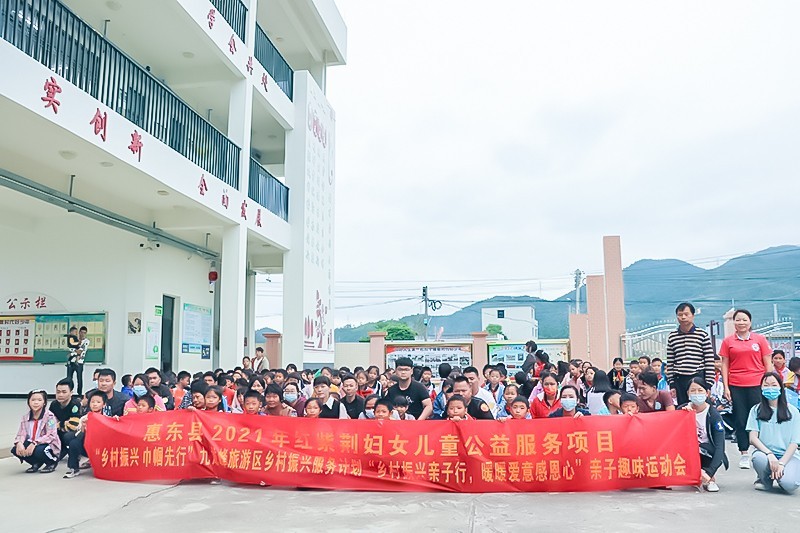 10月21日下午,由广东省惠东县妇女联合会、九龙峰旅游区妇委会主办,惠东县爱心群社会工作服务中心承办的惠东县2021年红紫荆妇女儿童公益服务项目--“乡村振兴 巾帼先行”九龙峰旅游区乡村振兴服务计划在田心小学举行了“乡村振兴亲子行,暖暖爱意感恩心”亲子趣味运动会。