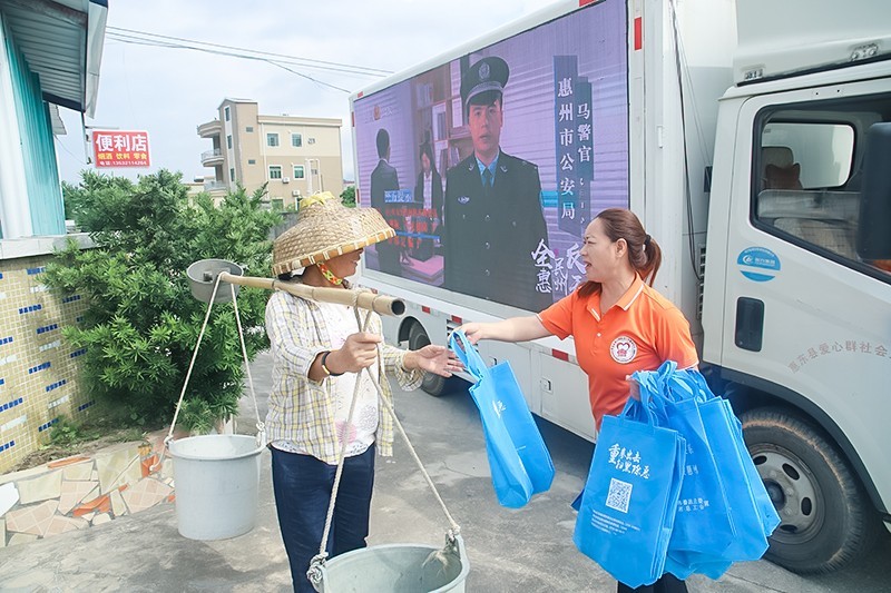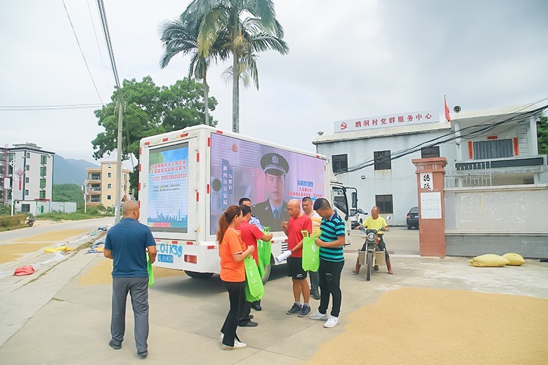 集外放音效喇叭、大型LED电子屏幕、醒目字标语的活动宣传车,在碧甲村和鹧洞村工作人员带领下,社工们在社区主干道、居民活动场所以及工地等地段,向居民宣传和普及禁毒相关知识。每到一个区域,社工通过趣味问答的形式,吸引居民参加活动,如,邀请居民回答视频宣传中的禁毒知识问题。回答正确后,给予一定奖励。进一步提高群众对毒品危害的意识。