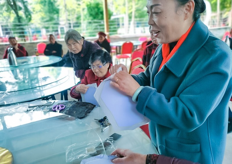 有一个阿姨学习和制作都特别快,1个小时都不到就做好了一件成品,她还不时的指导身旁的人,帮助大家更快的掌握制作技能。