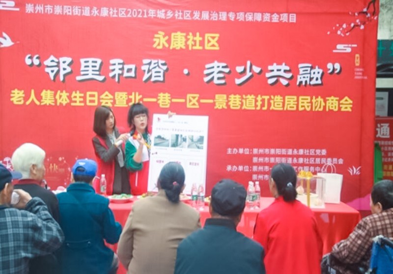前期从崇州一心与永康社区、崇阳街道领导进行了几轮协商,最终确定以“健康”为主题,到对北一巷5个小区进行入户走访宣传,再到在北一巷巷道内开展了“邻里和谐.老少共融”重阳主题活动暨北一巷巷道打造居民商议会,就巷道打造的点位、形式及特色主题等情况,征集了居民的建议并进行投票。