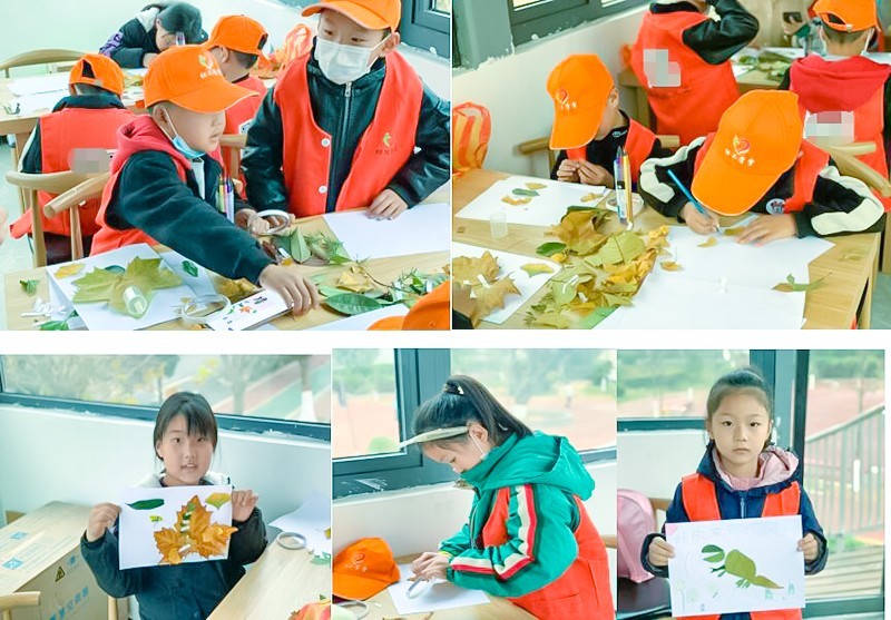 活动刚开始,社工向小朋友们展示了自己做的树叶拼画,引导小朋友们思考自己想要拼贴树叶拼画的样子,然后组织小朋友们有序到广场周围捡一些自己树叶。回到农家书屋后,小朋友陆陆续续都开始动起了小手,一点一点用树叶装饰手中的A4纸。很多小朋友都是做完一张树叶拼贴画后又继续做了一张。