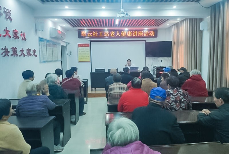 11月25日下午,翠云路社工站联合和光园社区卫生服务中心,针对河南省洛阳市洛龙区翠云路街道龙祥东社区老人开展了老年人健康主题讲座活动,本次活动有幸邀请到了和光园社区卫生服务中心的邵云霞医生和朱医生,在龙祥东社区服务中心三楼会议室,针对冬季老年人常见疾病进行详细讲解,还有不少老党员也参加了本次活动,本次活动到场老人共计32人。