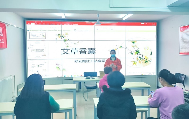 活动开始后,翠云路社工站的工作人员向大家讲解了艾草香囊的历史由来、功效与作用,让大家了解了中华优秀传统文化中的“艾”文化,为我们的“艾”文化传承贡献自己的力量。