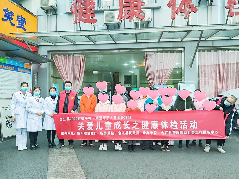 为切实加强孤儿基本权益保障工作,贯彻落实政府社会救助政策,推进四川省“明天计划”孤儿健康体检工作,11月27日,由四川省民政厅主办、泸州合江县民政局指导、四川三河职业学院红十字协会协办、符阳救助社会工作服务中心承办的2020年百镇千村•助爱牵手儿童关爱项目“明天计划”健康体检工作,在符阳救助社会工作服务中心相关负责人、民政工作人员、三河职业学院红十字协会志愿者共计12人的组织下,携手四川省合江县人民医院体检中心开展社会散居孤儿免费体检工作