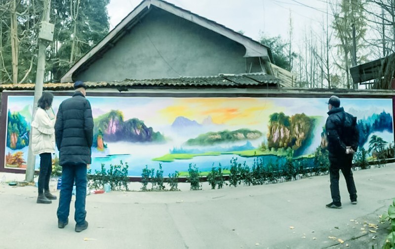 随后,便是具体内容的描绘,村民们时不时的讨论着山、树颜色的搭配,图案的高低层次之分。经过几天的不懈努力,在景汇村群众的积极参与下,这面生动形象、主题鲜活、色彩亮丽的山水文化墙终于顺利完成。崭新绘制好的文化墙令人耳目一新,吸引了很多过往的村民驻足观看,大家纷纷感叹到原先了无生气的墙面一下变美了,胜似换上了一件五颜六色的新衣。