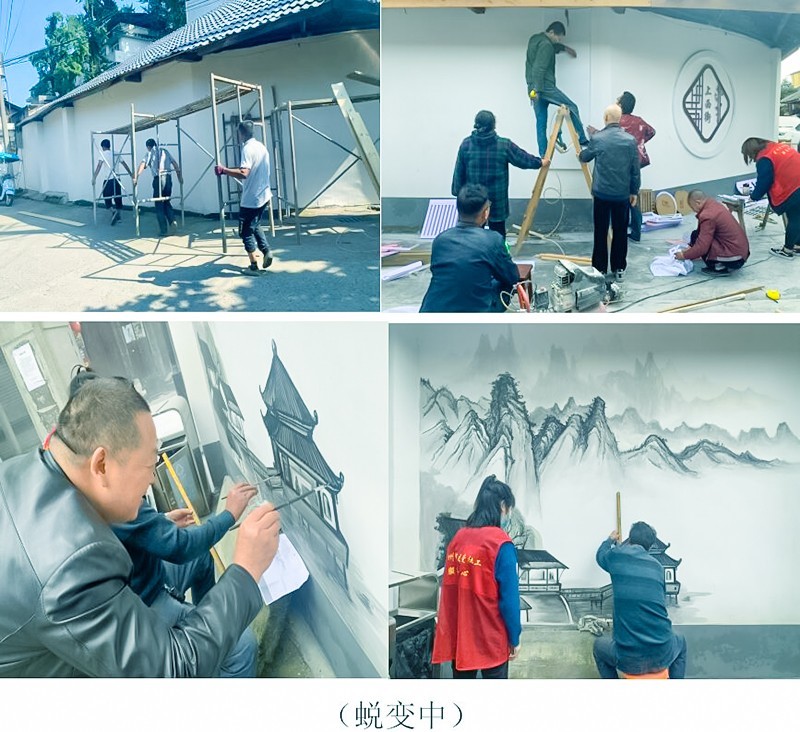 文化墙通过以居民需求为导向,墙面通过绘制水墨画和张贴摄影照片的形式,展示上西街生活场景和街道能人影像,讲述这“一路”的老故事。文化墙展示的洄澜记忆是上西街的内涵与精髓,既有图像绘制方面的内容,又有竹编工艺品展示,设计新颖,体现传统文化的同时兼具观赏性,真正实现了“一墙一风景”“一墙一创意。