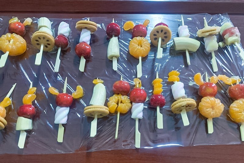 活动开始前,社工首先介绍讲解冰糖葫芦的制作方法,特别提醒小朋友们用竹签一个一个串水果时,一定要注意竹签的尖尖,小朋友们要学会安全使用竹签。