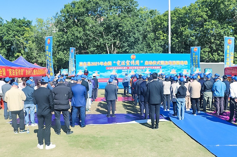 为深入开展宪法宣传活动,弘扬宪法精神,维护宪法权威,推动宪法全面实施。12月3日,广东省惠东县在南湖公园大草坪及法治长廊隆重举办2021年“宪法宣传周”启动仪式暨法治游园活动。