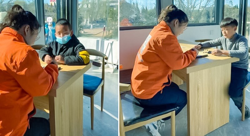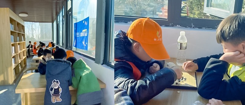 比赛结束后,还有几位小朋友仍意犹未尽,想和社工一起下五子棋。