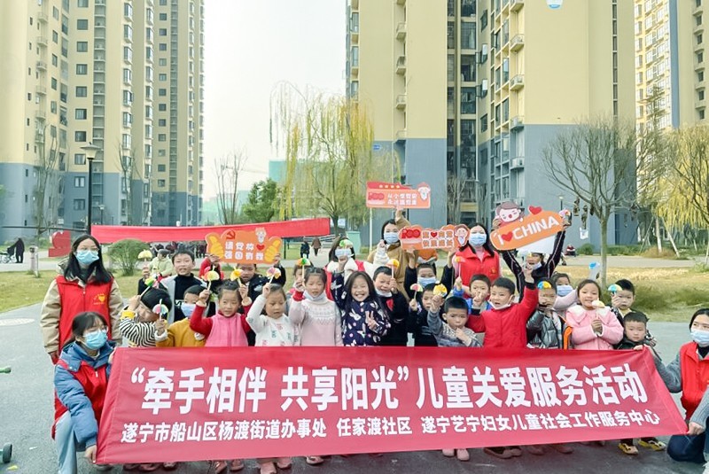 冬日虽冷,终有暖阳。在第36个“国际志愿者日”来临之际,为进一步弘扬“奉献、友爱、互助、进步”的志愿服务精神,深化留守儿童关爱服务活动,12月5日下午,在四川省遂宁市船山区杨渡街道办事处的指导下,任家渡社区的支持下,遂宁艺宁妇女儿童社会工作服务中心在山水小区内开展了“牵手相伴 共享阳光”儿童关爱服务活动。