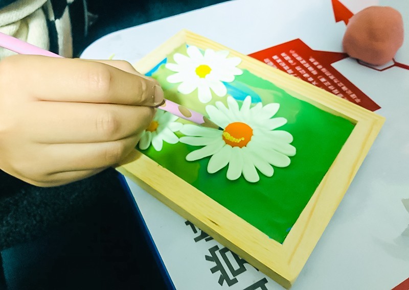 小朋友领到木质小画框、彩色超轻黏土、图片卡、彩色卡纸等活动材料后,社工老师就开始讲解怎么使用彩泥制作好看的图画啦!第一步先把裁剪好的彩色卡纸固定在小画框里面当背景颜色,再根据老师发的图片卡选择颜色用手搓捏出图片上的形状再固定在小画框里面,然后小朋友按照自己的想象力来制作个性化的彩泥画。