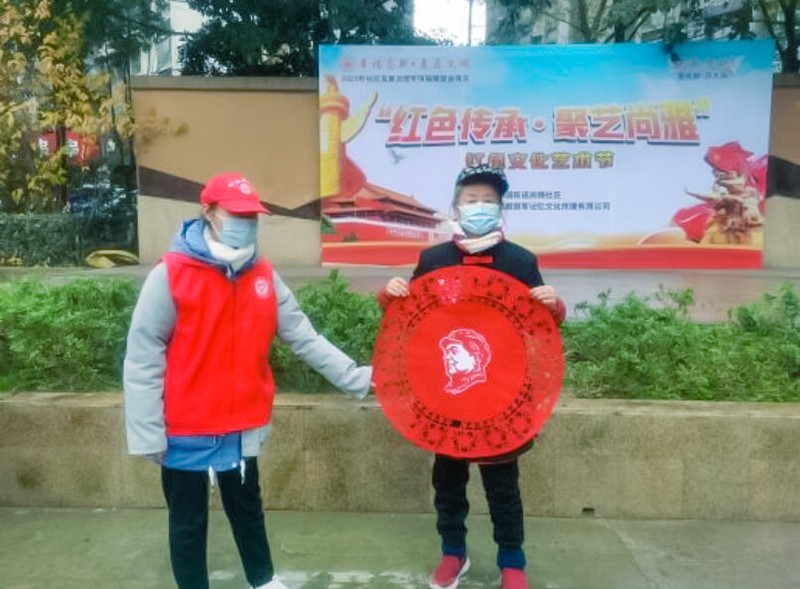 1月5日,四川成都高新区西园街道尚雅社区携手成都市博益社会工作服务中心承办“红色传承·聚艺尚雅”红色文化艺术节在双拥广场开启。十余张铺着红色桌布的长桌上,摆满了老物件、老照片、绘画、书法、剪纸等红色藏品,如同置身红色博物馆,这是尚雅社区首届集艺术性、观赏性、趣玩性于一体的艺术节。